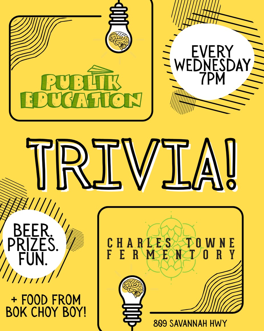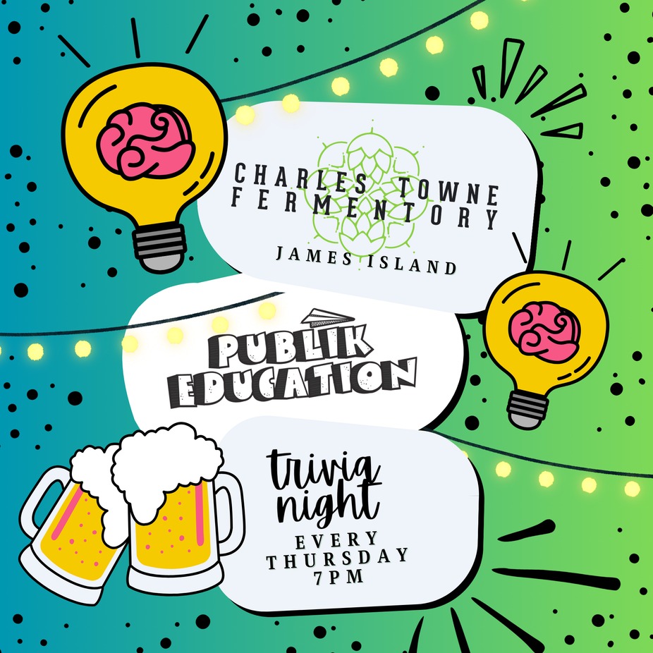 Join us at our James Island taproom every Thursday night for trivia & food trucks! Food starts at 5PM, Trivia at 7PM!